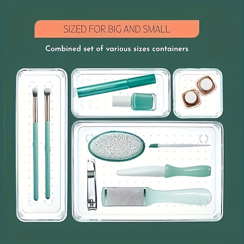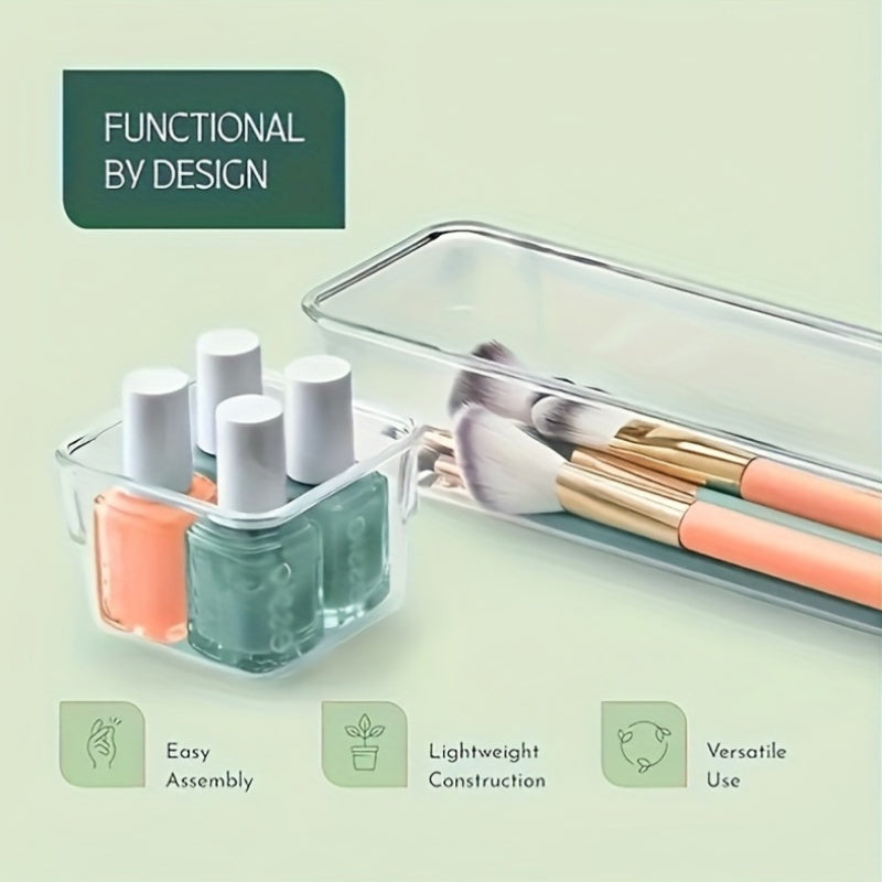 25/44/60pcs Deluxe Desktop Drawer Organizer Set - Transparent, Multifunctional Storage Boxes For Bathroom, Bedroom, Living Room - Space-Saving, Adjustable, Stackable, Storage And Organization