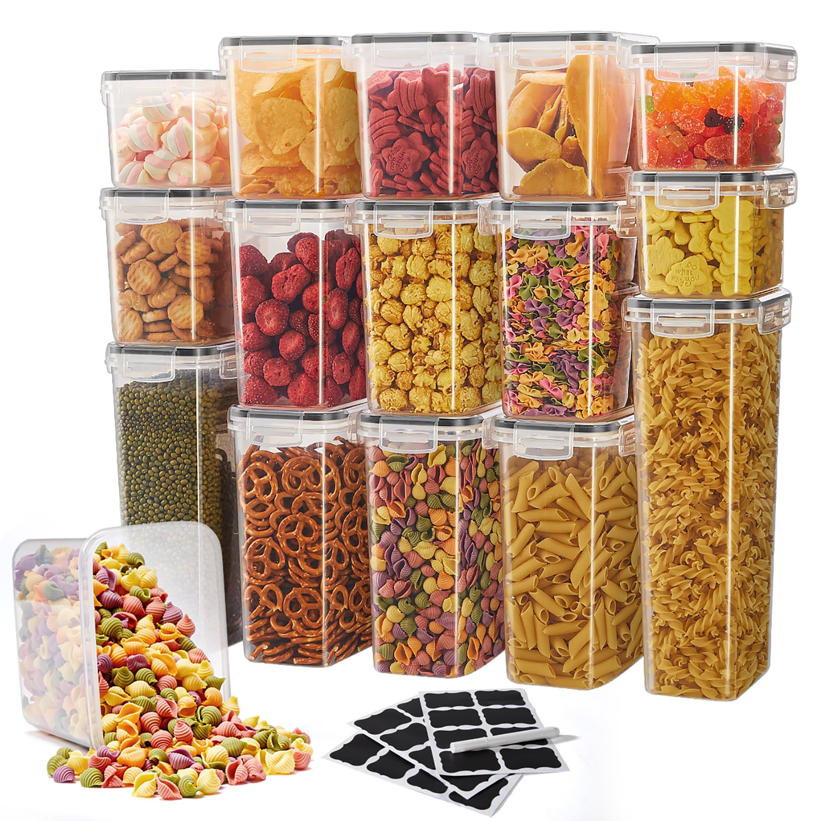 Asnews 15 Pcs Airtight Food Storage Containers with Lids, Kitchen Storage Container for Cereal, Dry Food, Flour and Sugar