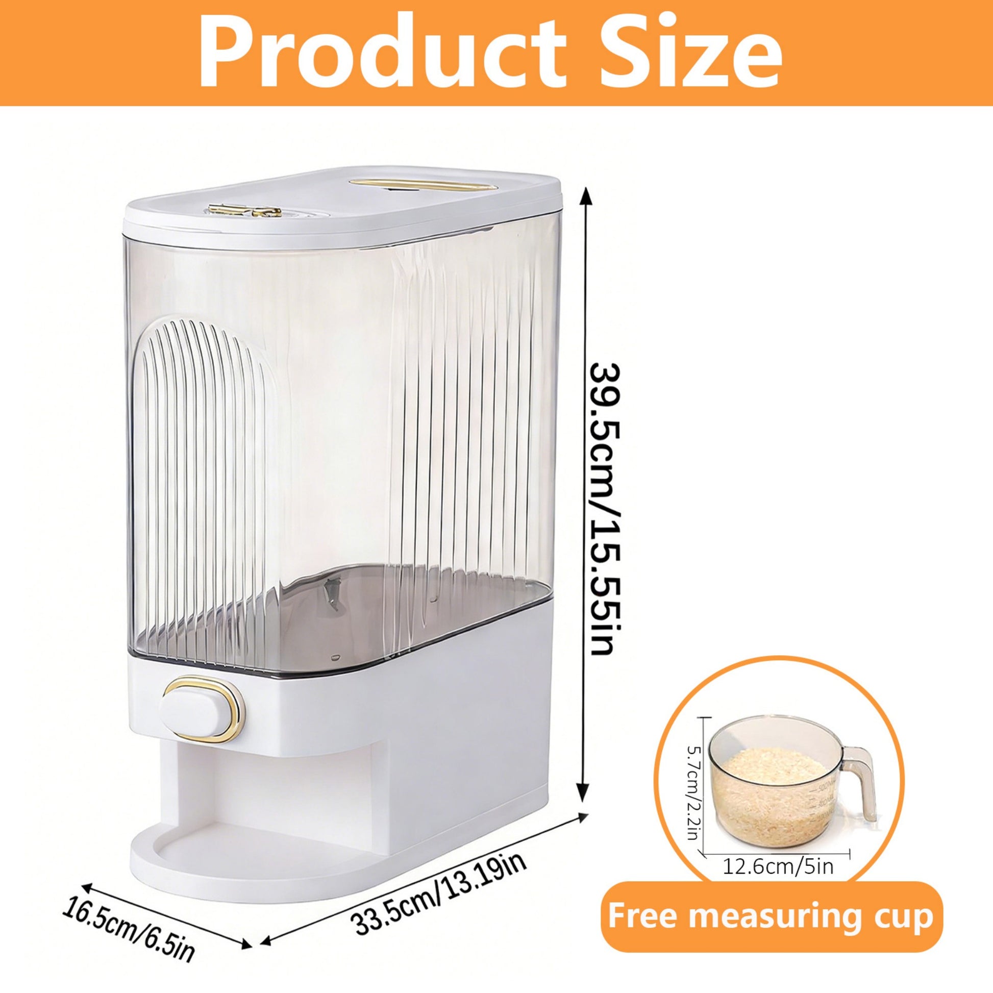 - Precise Dispensing & Measured Portions: Simply press the button to dispense, and release to stop. The rice dispenser included measuring cup with markings ensures that you can accurately measure out the correct amount of grains, avoiding waste.