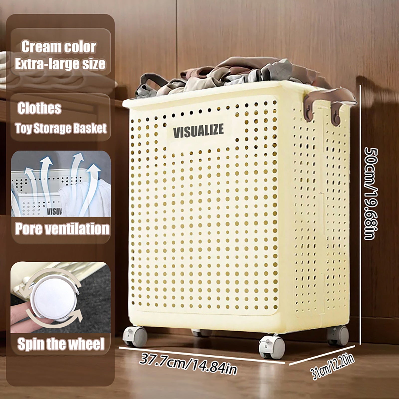 Asnews Foldable Laundry Hamper with Wheels, Large Capacity Dirty Clothes Basket for Bedroom/Bathroom/Laundry Room